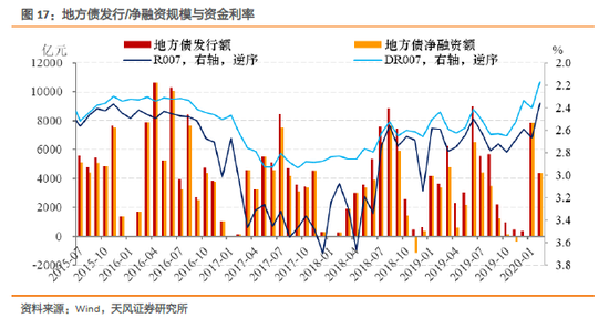 至于特别国债,1998年时央行首先进行降准以配合四大行购买特别国债,2007年的特别国债主要针对农业银行定向发行,并且这部分特别国债最终转让给央行。这说明发行特别国债时央行应该都会有相对的配合。今年特别国债的用途应该和1998年的特别国债或长期建设国债相似,筹集资金可能用于补充特定银行(如中小银行)资本金或专项用于湖北等疫情严重区域特定支持,我们预计发行时央行也会有特殊的配合,因此流动性冲击影响可控。